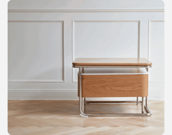 Thiết kế tách đôi hai khối bàn – một thấp, một cao – tạo nên nhịp điệu hài hòa cho không gian phòng khách. Sự kết hợp giữa mặt gỗ veneer cao cấp và khung chân thép không gỉ mang đến nét tương phản thú vị: mềm mại – cứng cáp, ấm – lạnh, cổ điển – hiện đại. Một lựa chọn lý tưởng cho gia chủ theo đuổi lối sống thanh lịch, tối giản nhưng vẫn không đánh mất cá tính nội thất riêng.