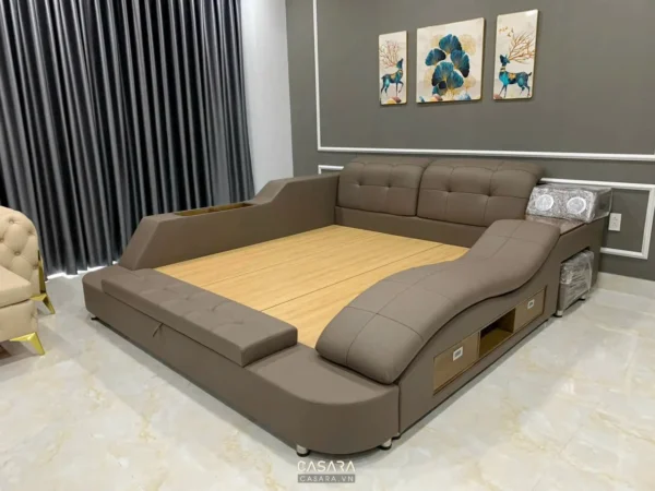 Bạn đang tìm kiếm một chiếc giường tích hợp đầy đủ các tiện ích hiện đại? Hãy để Casara đồng hành cùng bạn trong hành trình nâng tầm không gian sống. Chúng tôi mang đến giường ngủ thông minh đa năng, thiết kế chuẩn mực thẩm mỹ, tối ưu công năng. Đáp ứng mọi nhu cầu từ thư giãn đến làm việc, giải trí ngay tại phòng ngủ. Casara cam kết mỗi sản phẩm đều đạt độ hoàn thiện cao, tinh tế đến từng chi tiết. Không chỉ là nội thất, chúng tôi tạo nên những giải pháp sống tiện nghi và đẳng cấp cho bạn.