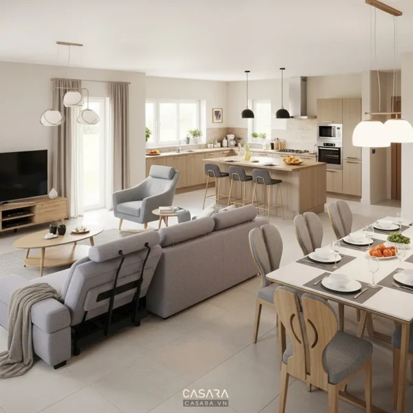 Chất liệu thân thiện với môi trường lên ngôi: Nội thất bền vững là xu hướng tất yếu, với sự lên ngôi của gỗ tự nhiên như gỗ sồi, gỗ óc chó, cùng các vật liệu tái chế thân thiện với môi trường. Casara tiên phong trong việc ứng dụng các dòng gỗ chất lượng cao, vừa đảm bảo độ bền vừa đáp ứng nhu cầu thẩm mỹ.