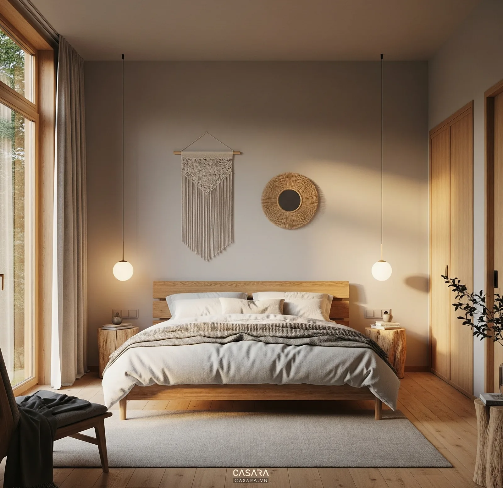 Nếu bạn thích ánh sáng vàng dịu – hãy chọn đèn LED màu ấm, không chói. Nếu bạn ngủ dễ hơn trong căn phòng vải thô, hãy dùng rèm cotton tự nhiên. Nếu bạn cần cảm giác mộc mạc – chọn chất liệu gỗ lộ vân, không sơn bóng.