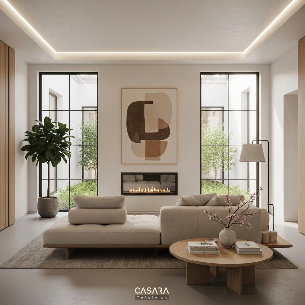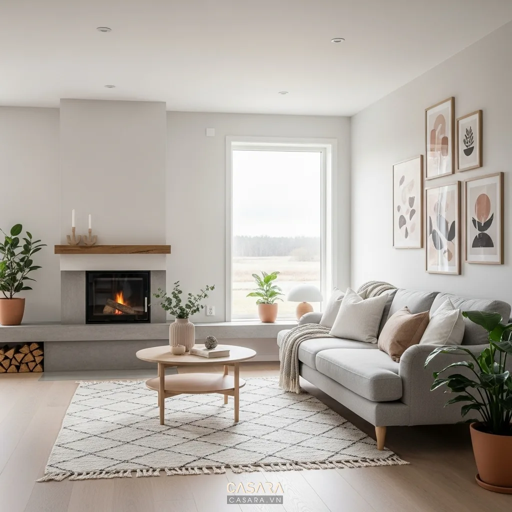 Scandinavian tiếp tục là phong cách ảnh hưởng mạnh mẽ đến xu hướng màu sắc nội thất năm nay. Những gam màu trung tính như trắng, be, kem, xám nhạt, nâu gỗ được lựa chọn phổ biến vì mang đến cảm giác nhẹ nhàng, thư giãn và tạo nền hoàn hảo để tôn lên đường nét nội thất.